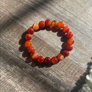 Ignite your crystal-core glow with this Carnelian and Sardonyx beaded bracelet, featuring 10mm polished round beads in rich hues of red, orange, and creamy white, measuring 7.5 inches in length. In great condition, this piece radiates grounding energy, passion, and creative fire—perfect for your healing aesthetic, fall capsule, or gemstone stack.