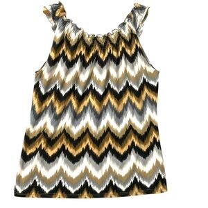 Carol Rose Top Size M Earthy Tone Striped Lightweight Frills Fairy Y2K Chevron