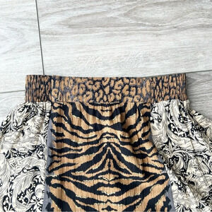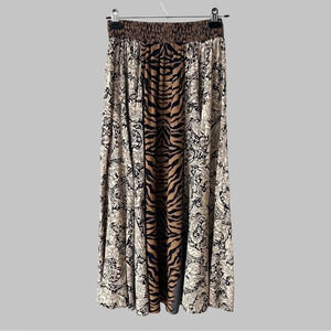Carole Little Tiger Print Patchwork Pleated Midi Skirt