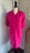 Vintage Carole Little dress in vibrant fuchsia, featuring sewn-on shoulder pads (easily removable if desired), a half-button front, and two deep pockets. The silhouette is roomy at the top and tapers to hug the waist and hips - length measures 36” and will fall slightly lower on shorter wearers. Tagged petites. Made of 66% linen, 34% rayon. Light wear with gentle fading, no stains or marks. Flat lay measurements shown in photos.