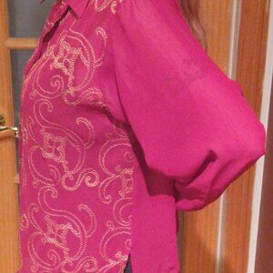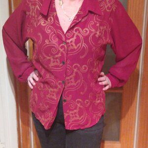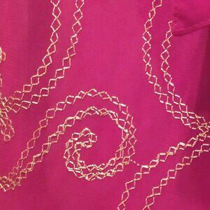 Carole little petite deep red sheer with gold embroidery very light and delicate size 14