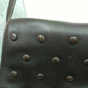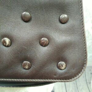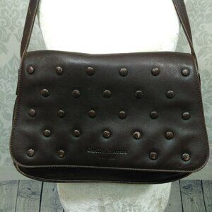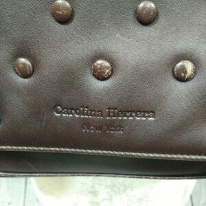 Carolina Herrera New York Brown Leather Flap Bag Handbag Polka Dot Shoulder Bag