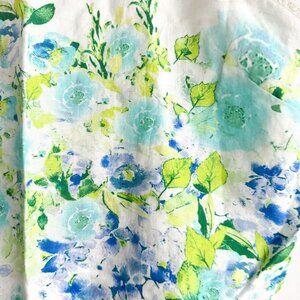 Caroline Constas Linen Floral Blue Green Cropped Top XL.