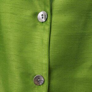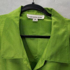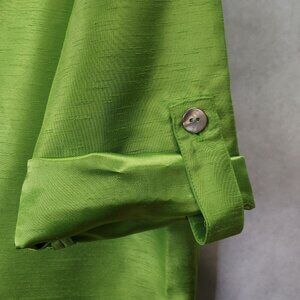 Caroline Rose Blouse Women M Iridescent Green Lagenlook Collared Roll-tab Sleeve
