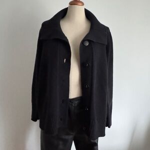 Black Button Cardigan - Knit - Long Sleeves - Large Collar - Excellent pre-owned condition