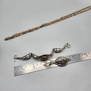 Carolyn Pollack 925 Brass Copper Necklace Bracelet Set Filigree Teardrop Silver