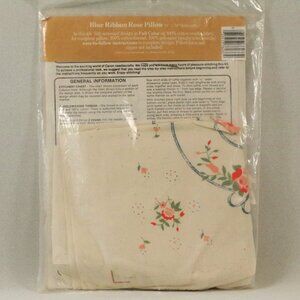 Caron Candlewicking Embroidery Kit Ruffled Pillow Cover #6037 Blue Ribbon Rose