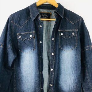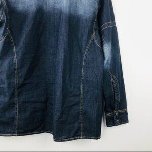 Carreli Jeans Cotton long-sleeve collar Snap up denim Shirt Women Shacket Size M