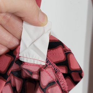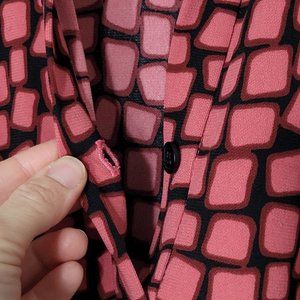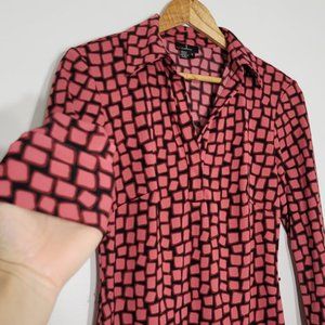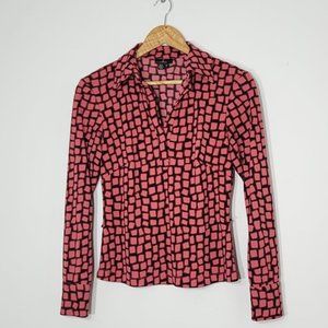 Carriere Pink & Black Print Collared V-Neck Long Sleeve Popover Blouse Sz S