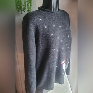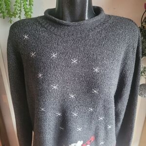 Carroll Reed classics black and grey knit rolled neck sweater with snowflakes and winter scene