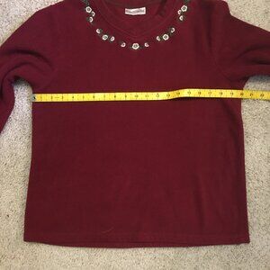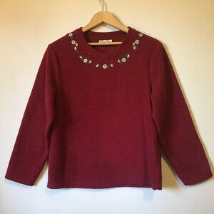 Carroll Reed Red Embroidered Fleece Pullover Sweater Large
