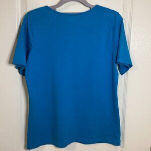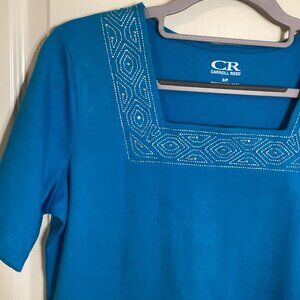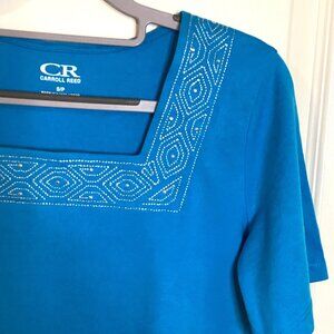 Carroll Reed Women's Blue T-Shirt Top Size S/P Square Shiny Neckline