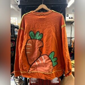 Selling this interesting mens shirt. Bright orange with carrots on the back. The size is a large and it’s in good condition.