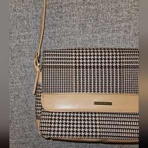 Stunning Carryland Purse in a houndstooth print with tan features. Wallet pocket and mirror attachment included in the purse as well as lots of inner and outer pockets. Strap lenth is adjustable.