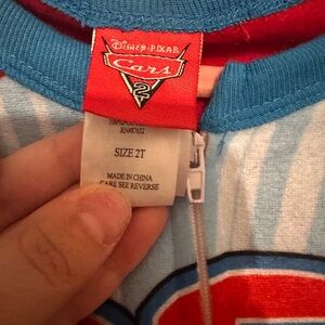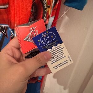 This Disney one piece showcases a vibrant red and blue color scheme with a striking race car design, perfect for fans of the Cars movie. The footies style ensures warmth and comfort, making it an ideal choice for cozy nights. The color-blocked sleeves and checkered flag patterns add a playful touch to this full-body sleepwear.