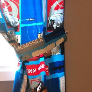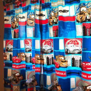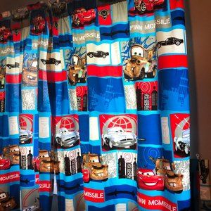 Cars 2 Disney Pixar Curtains, Comforter and Sheet set for Twin size bed.