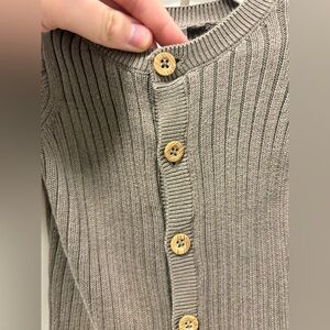 Soft ribbed knit footie with button front. Ideal for comfort and style. 100% cotton material.
