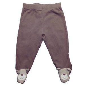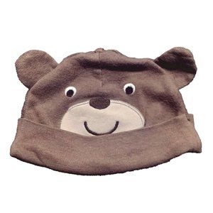 Carter's 3 pieces of a 4 piece set with a hat, a striped onesie, and footed pants with a bear motif. In good pre-owned condition.