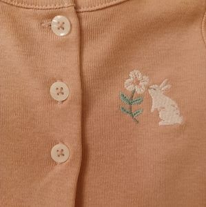 Pale Pink dress perfect for spring! underneath dress buttons like a onesie perfect to keep that little diaper covered. Comes with button up cardigan with bunny appliqué
