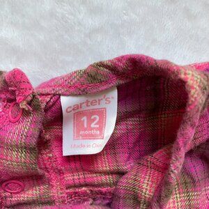 Carter’s Baby Girl Plaid Long Sleeve Top Size 12M | Pink Button-Front Shirt VGUC