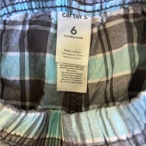 Carter's Blue Gray and White Plaid Shorts With Elastic Waistband Size 3-6m