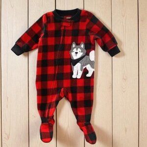 Carter's Buffalo Plaid Puppy Dog Zip-Up Fleece Footie 3 Months