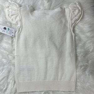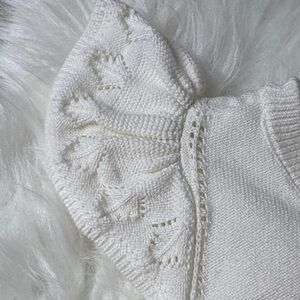 Elegant cream sweater with ruffle sleeves. Soft and cozy for any occasion.