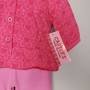 Carter's Girls 2 Piece Matching Set Size 3-6months Perfect for Fall Pink sweat pants, elastic waste and soft interior Top pink, 4 buttons, hood and faux pockets. Small crown screen print embellishment. Bundle and Save