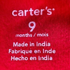 Carter’s Girls Red Long Sleeve Uncle Bodysuit Onesie 9 Months