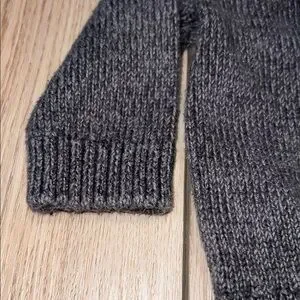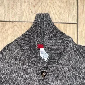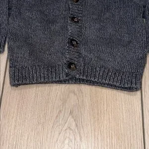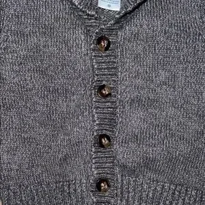 Stylish gray sweater with button closure. Ideal for layering and casual dress.