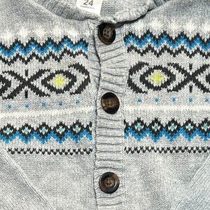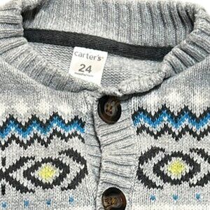 Carter’s Gray Cotton Cardigan • 24M • Button Down Sweater Fair Isle Style