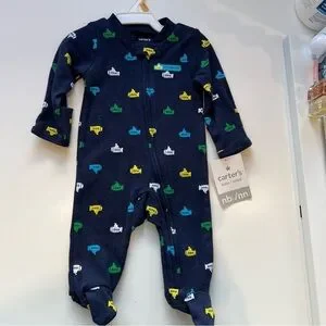 Carter's Navy Footie/Sleeper with Colorful Pattern