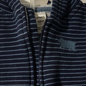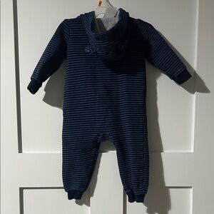 Soft and comfortable footie with navy and white stripes. Ideal for cozy wear.