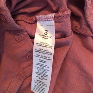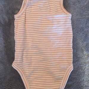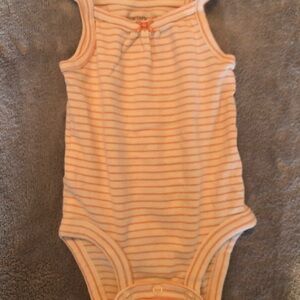Pink Carters Bundle. Includes pink strip on white tank top diaper shirt with palm tree pink shorts set and darker pink/purple romper. All in good condition.