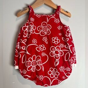 Carter’s bubble romper. Adorable red and white all over floral print. Thin straps - great for the summer. The colours make this a really cute Canada Day outfit!