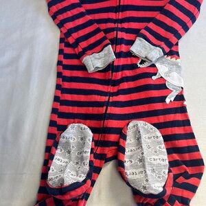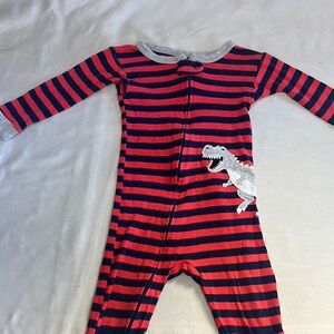 Carter's - Red and Navy Striped Onesie Sleeper with Dinosaur design