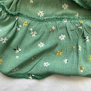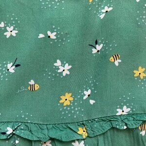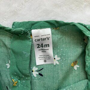 Carter's toddler dress, size 24 months. 100% viscose. Green sleeveless, tiered skirt design with a floral and bee pattern. Lightweight and soft fabric.