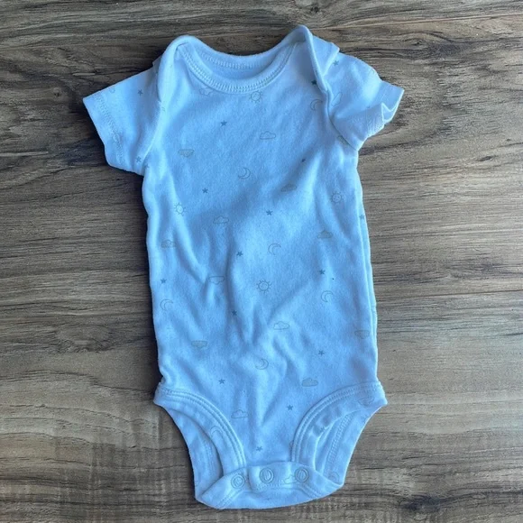 Carter’s bodysuit with sun, cloud and stars pattern. 100% cotton