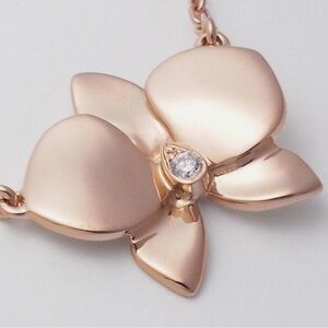 Stunning rose gold necklace with an orchid design. Perfect for adding elegance.