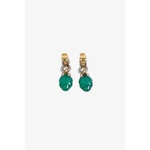 Cartier Carved Chrysoprase, Diamond + Gold Drop Clip-on Earrings