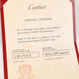 The Love ring from Cartier is crafted in an 18k rose gold, and features the iconic screw motifs all around the band, and is finished with a white diamond.