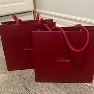 Sophisticated Cartier gift bag in vibrant red. Ideal for presenting special gifts.