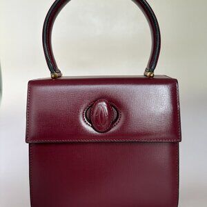 Cartier Wine Burgundy Leather Kelly Style Small Mini Top Handle Satchel Bag