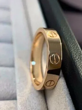 Cartier non-diamond ring. This non-diamond version from the Love collection features the iconic screw pattern, understated yet sophisticated. It's slimming and elegant on the hand, in excellent condition, and comes with full packaging: box, dust bag, and certificate. Size: 8