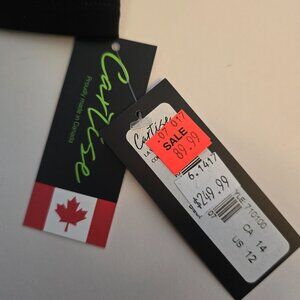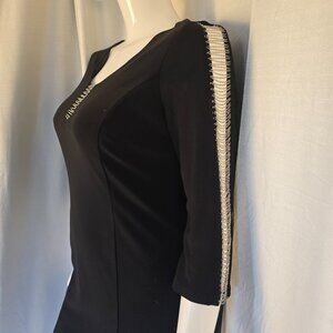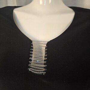 Cartise Little Black Dress with delicate chain detail on arms and front. NEW with label. Made in Canada. US - Size 12. Canada - Size 14. Zipper back. Poly/spandex.