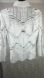 This blouse is very unique and rare. I have never seen anything like it. Multiple layers of 3 dimensional white pattern sewn on to a black sheer layer. Stunning design. Very vogue. Silver detailed buttons with fabric hooks.