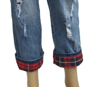 Cartise Distressed Peek-A-Boo Plaid Cuff Stretch Jeans