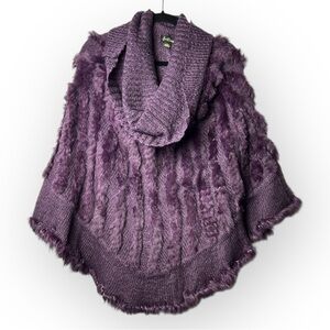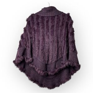 Cartise Maroon Rabbit Fur Cowl Neck Poncho L
