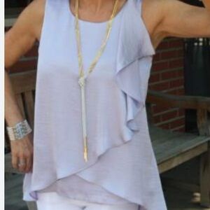 Draped ruffle on one side...great detail...subtle print under ruffle!