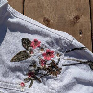 Cartise White Denim Jacket with Floral Embroidery Size US 4